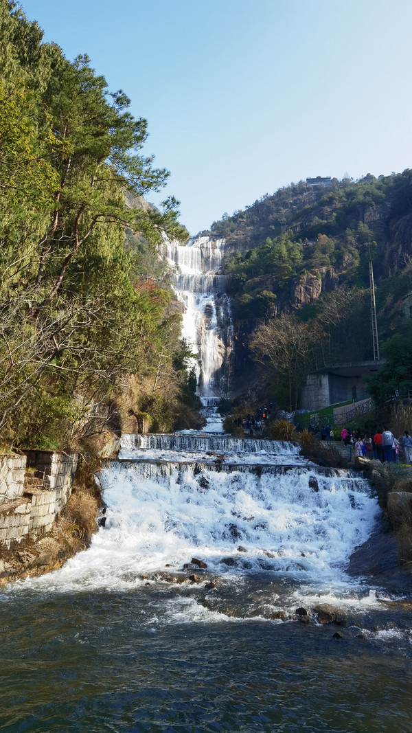 我们的天台山之旅,主要是游览天台山大瀑布。这是我国落差最大,横度最宽的瀑布。从山脚下,就可以看到一条长长的瀑布,层层叠叠奔驰而下,气势磅礴。