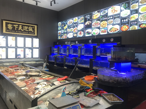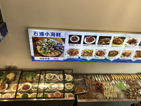 选择了一家沿岸的小店,看起来人气还挺旺盛的。店门外的小圆桌旁坐满了人,桌上堆满了被吃过的海鲜壳,一片狼藉,很有海边餐馆的氛围。
