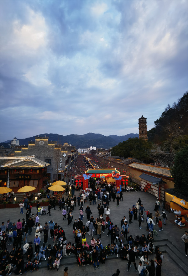走进临海市第一古街紫阳街,只有一公里左右的街面上,店铺门口张灯结彩,悬挂着各种红灯笼、红绸带和绸子花,过节气氛浓厚。街巷里,不仅名胜古迹众多,而且有十足的烟火气息,各种手工制品和特色美食小吃的店铺、摊位前围满了人,我们只能顺着人群缓慢挪动。