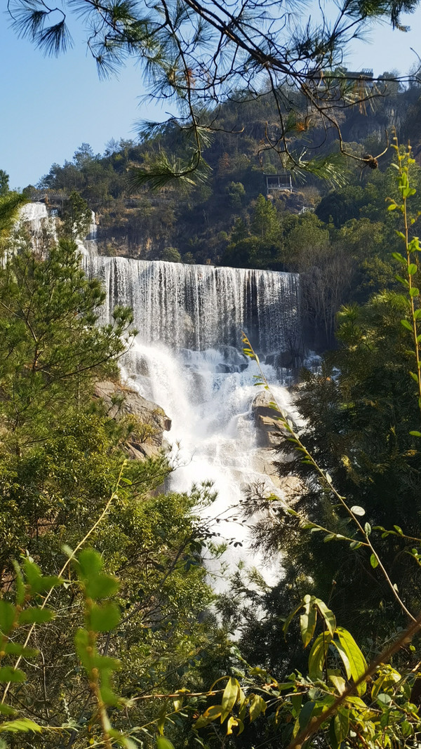 我们沿着山谷,一级一级的往上爬,行走在山涧与山腰间,变换着角度欣赏着瀑布,越来越近距离地走近瀑布,“远近高低各不同”,每一层都呈现出不同的景色。