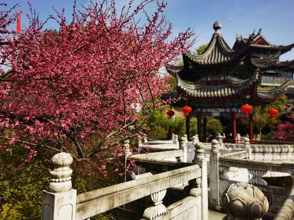 没有想到的是,这个村子里的文化中心,竟然是----在山上!慕名而来的人络绎不绝,看着下山的人都气喘吁吁的样子,我已经胆怯了。派老公去打前阵了,我可以偷懒盗图。没有压力地走走停停,半路上偶见的几株梅花,已经给我带来了惊喜,这是我第一次正式的看到梅花,北京的春天,桃花盛开,随处可见,却没有特意地去欣赏过梅花。