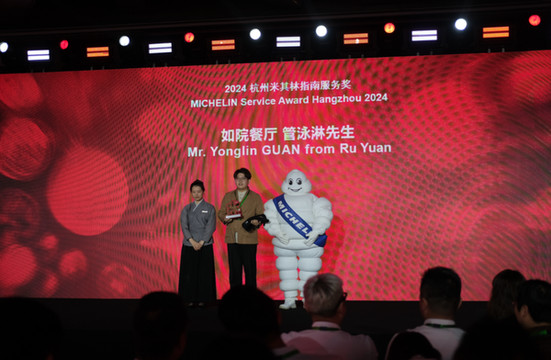 来自另一家新上榜米其林一星餐厅如院餐厅的管泳淋先生获得本届杭州米其林指南服务奖。管先生来自杭州。温和而开朗的他,对餐厅出品具备丰富的认识,对餐厅的概念也有很好的理解,同时了解地道的杭州饮食。他不仅提供细致入微的服务,还能生动地诠释当地食材的故事和美食的魅力。