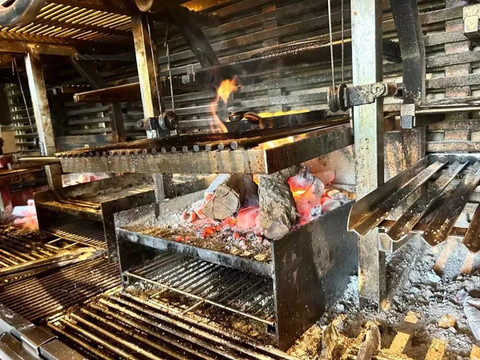 我们常见的青酱,通常翻译Pesto,是指意大利人用罗勒、松子、橄榄油制作的酱料。而在阿根廷,提到青酱,却习惯用意大利芹(欧芹)、辣椒(Fresno Chile 或 Red Jalaperio)、橄榄油、蒜头、柠檬、洋葱和红酒醋,除主体,还可以按照口味加入香菜、牛至、薄荷等香草。这与草饲牛肉,确实是绝配。 这里意式油渍甜椒肉抚慰人心,椒好味美。但我看着这后厨阵仗,确实对巴斯克烤肉有点小失望,酱汁没有升温就浇下。这简直是在我的火焰里倒冰水,吃盐烤吧,不麻烦了。