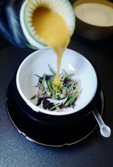 远洋私厨已经拼搏多年,也是修成正果。而像燕筑潮那样,我个人认为,不拿奖也难。黄景辉大师的菜与吕杨大师的酒,他俩的合作,我心里是形容金庸老先生多部英雄巨著的藏头诗“飞雪连天射白鹿,笑书神侠倚碧鸳”,翻成白话文就是:主角组了个梦之队!