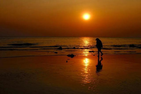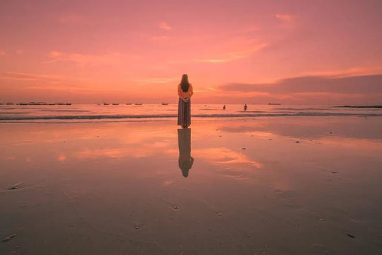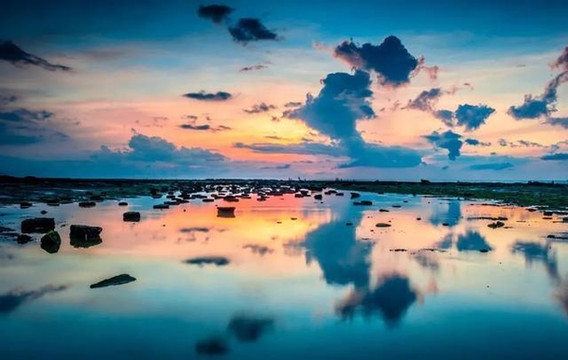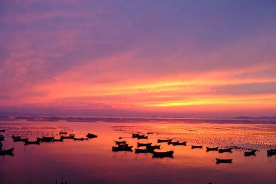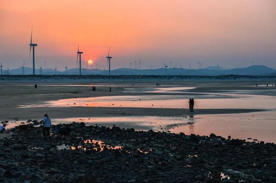 滴水丹屏的滩涂细腻到像是一面大镜子,到了傍晚会将人和夕阳全部倒映出来,格外唯美。