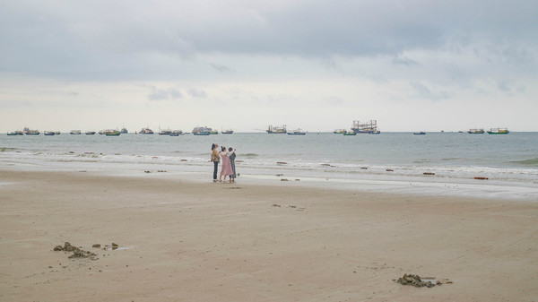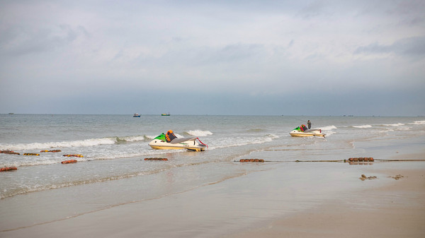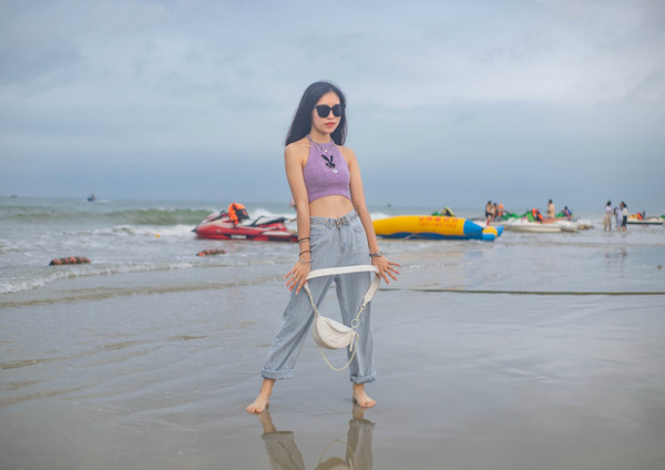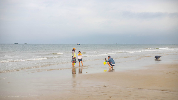 虽然今天的天气不好,略有些阴沉,但是沙滩上的游客还是很多的,毕竟也只有上班的打工人才会懂得,节假日的每一天都是很值得珍惜的。
