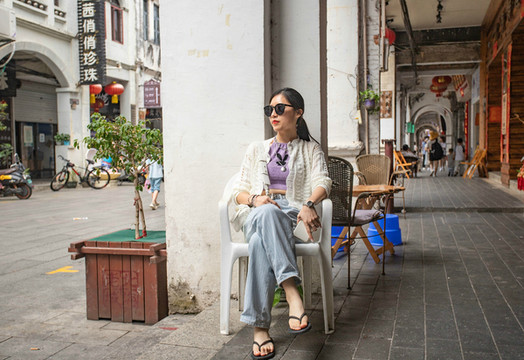 临街墙面部不同式样的装饰和浮雕形成了南北两组空中雕塑长廊。这些建筑临街的骑楼部分,既是道路向两侧的扩展又是铺面向外部的延伸,所以游人走在老街上,特别凉爽。
