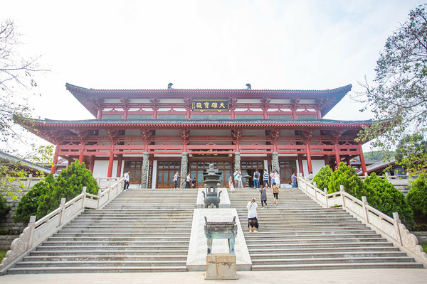 走进古刹,就可以看到气势恢宏的古建筑群。这些大都是汉唐风格的建筑,严整开朗、庄重大方、色调又简洁明快,游客也非常多。还有很多虔诚的信徒正在上香,氛围显得格外庄严肃穆。