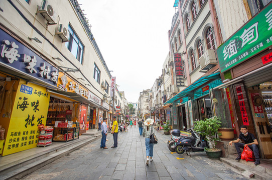 这条老街是一条有近二百年历史的老街,始建于1821年,最初的时候只有200米长,4米宽。随着各历史时期的不断发展,现已成为长1.44公里,宽9米,沿街全是中西合璧骑楼式建筑的商业老街。