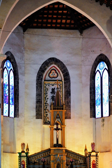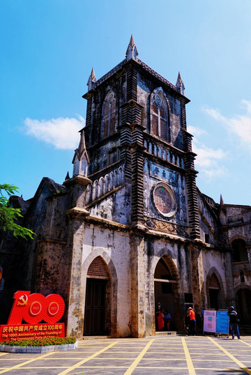 如果要问涠洲岛哪里的景色最具有历史人文气息,那一定是那历经岁月沧桑洗礼的天主教堂。这座教堂是“晚清四大天主教堂”之一,距今数十载历史悠久。其建筑特色为典型的文艺复兴时期 法国 哥特式教堂,外表高耸的 罗马 式尖塔,营造出了“神秘天国”的氛围。