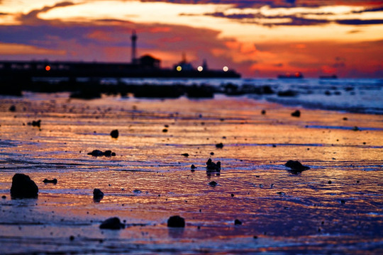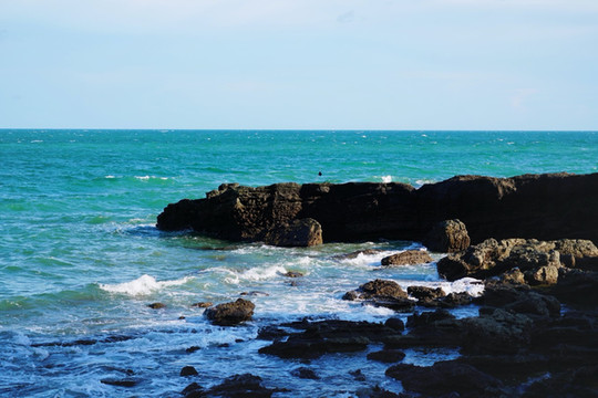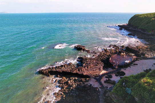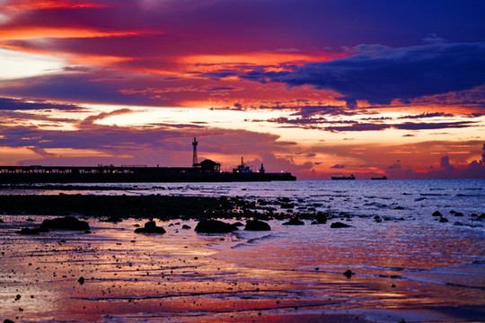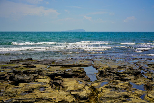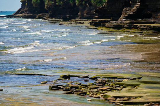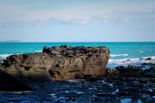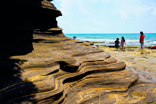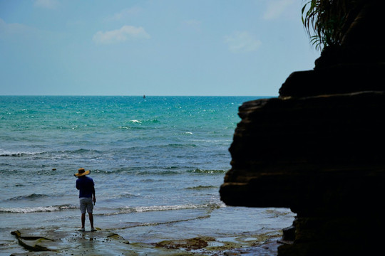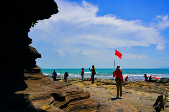 “海上生明月,天涯共此时”想要看到这诗歌唯美的景象,就要早起来五彩滩蹲守清晨的第一抹阳光。看着红彤彤的太阳,从海平面中渐渐升起,拨开云雾,暂漏尖角,那种奇妙之感无以言表。在瑰丽的五彩滩,奇异的火山熔岩地貌石与海蚀地貌,都有着奇异的波浪纹理,尤为精美,在仙人掌与碧色大海的映衬下,宛如一张巨型的砚台,美妙绝伦,神奇无比。