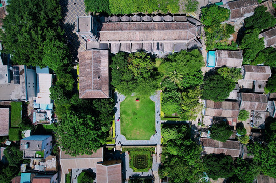 神圣的涠洲岛天主教堂,掩盖在绿荫婆娑的热带森林中,一抹艳阳照耀下墙面光影斑驳,百年天主教堂里金光闪闪,独特的内饰建筑美引人注目。这座气势恢宏的教堂屹立岛上,彰显了信仰的力量,也印证了涠洲岛东西方文化的交融。如今的天主教堂成为了婚纱摄影胜地,教堂内部与外部的精美建筑造型,都是天然的背景墙。在教堂后方,还有一亩小花园,花园里芳草茵茵,喷泉冲天而下,一旁的铁艺休憩桌椅,也成为了旅人们游玩拍照天然道具。紧靠天主教堂还有一座静谧书屋,一本书一杯茶悠享半日惬意时光。