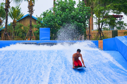 造浪池是水世界的灵魂!银基水世界的海啸造浪池有1.2万平方米,堪称 广西 最大。其独特的造浪设备,可以造出3米多高的巨浪,置身其中可以全方位的感受到来自海洋的力量,让人感受到原汁原味的海边冲浪。傍晚时分,灯光璀璨,伴随着异域风情的嗨歌热舞,旅人们嗨起来了。在造浪池边,蹦个野迪,又潮又酷。随着表演的氛围越来越浓郁,天空中烟花绽放,美妙之夜,因此更难忘。