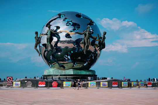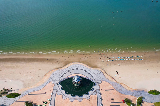 昔日的 北海 银滩,经过全新的改造升级后再次面世。当下的“新” 北海 银滩,最吸引人眼球的就是屹立在 北海 潮雕广场上的那一尊奇异美丽的“潮”雕。雕塑由球体y和球面如流线型的潮水带组成,球体代表着珍珠,其直径有20米,高23米,附在球体之上的七位少女铜像,象征七位仙女下凡。这座潮雕广场,看遍了银滩的潮起潮落,也见证了 北海 许多重要的时刻。