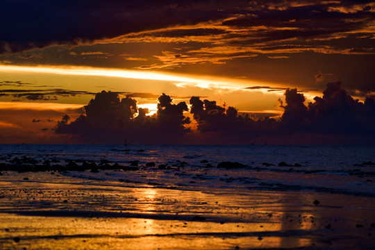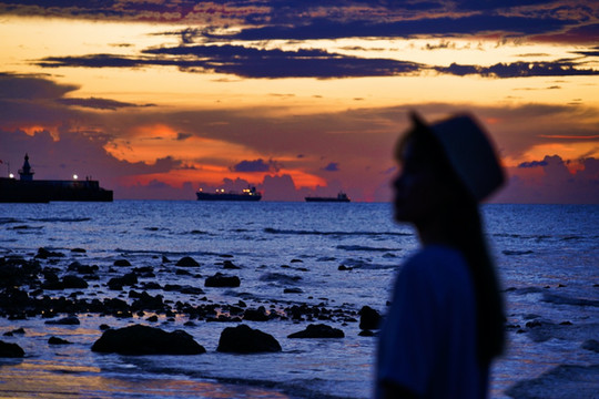 来涠洲岛除了看“海上升明日”,那日落映海的奇观也不能错过。岛上看日落的地方有三处,分别为滴水丹屏、石螺口、蓝桥,每一处看到的景致略不同,倘若时间充裕,不妨多待几天,每个地方都去看一遍,定能收获颇多。