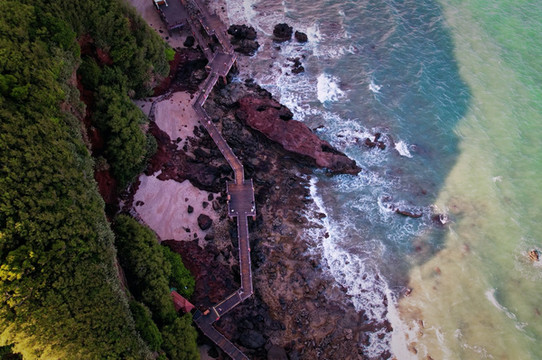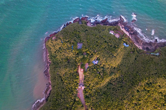 早就听闻涠洲岛上,有一只“绿色巨鳄”常年盘旋于海岸之上,可是很多游客来过数次都未曾见到。其实,这只巨型鳄鱼,就是鳄鱼山所在的位置,因从高空俯瞰整个山势如同一只鳄鱼因而得名。