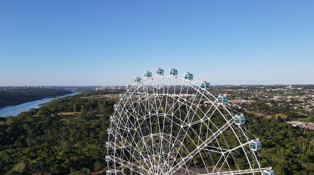摩天轮高达88米,相当于25层楼的高度,位列拉丁美洲第二,设有36个环绕立体声的空调观景舱,可舒适自在地360度俯瞰伊瓜苏城景与落日晚霞。夜幕降临,当5000多颗LED灯点亮整座摩天轮,浪漫指数拉满!