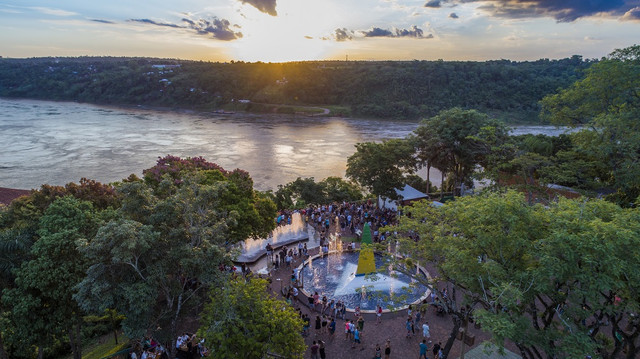 三国界碑是伊瓜苏一处具有历史与旅游价值的地标,巴拉那河(Paraná river)与伊瓜苏河在此交汇,形成了巴西、阿根廷、巴拉圭的自然分界,象征了三国地理与文化的交融。在这里,游客可一脚踏三国,一眼望三境,还能参与丰富的活动,如欣赏绝美日落和灯光水舞秀,观看精彩的拉丁歌舞和以原住民爱情传说为题材的情景演出,品尝地道美食,选购特色纪念品。