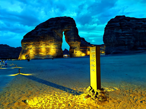 吴学峰介绍说,在埃尔奥拉的未经世俗打扰的环境里,蕴藏着许多地质奇迹,坐落于金色沙漠中,有着三层楼高的大象岩便是其中之一。这座外形酷似大象躯干的庞然大物,是红砂岩经过数百万年的风蚀与水蚀而形成。此外,这里还有不少自然的奇迹,包括人脸岩、蘑菇岩、彩虹岩等。
