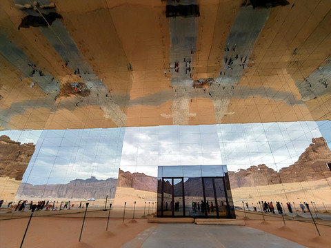 只见在埃尔奥拉沙漠的深处地带,这座震撼人心的建筑--马拉亚音乐餐厅,静静地矗立其间。由于音乐厅位于埃尔奥拉文化城镇中,堪称荒漠中的建筑奇迹,“马拉亚”在阿拉伯语中意为“镜子”,其名字与建筑真是十分吻合贴切。