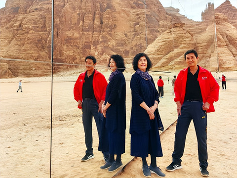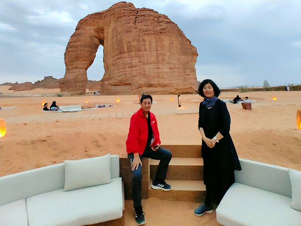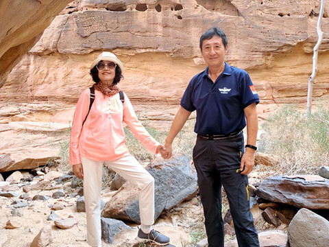 沙特时间17:30,中东行团队在领队谢泽雁与导游吴学峰的带领下,来到埃尔奥拉的第三个,也是这里标志性的景点:大象岩(Jabal Alif )。大象岩石的外型因酷似大象而闻名。可以说,与中国广西桂林的象鼻山有着异曲同工之妙。
