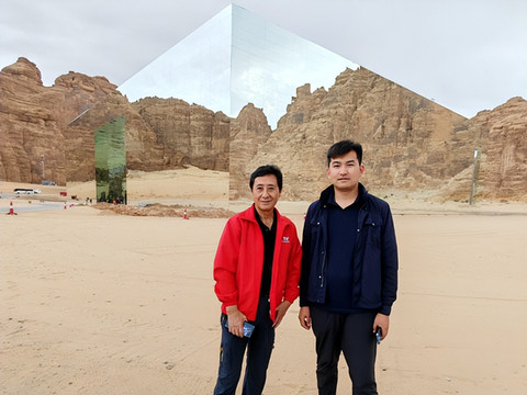 探秘中东行团队在埃尔奥拉的第二个景点是观赏埃尔奥拉著名的马拉亚音乐厅。2023.11.12沙特时间16:35,团队从黑格拉遗址驱车到此,望着这座建筑的第一个感觉,就是震撼中夹杂着无比的神奇。