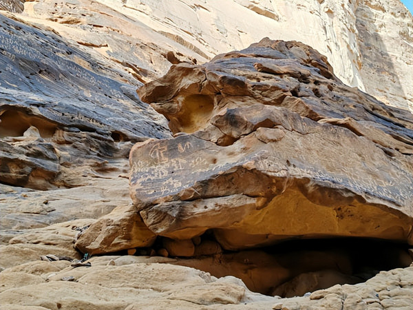 乘景区专用观光大巴车来到德丹的伊克玛山谷中,这里被誉为“露天图书馆”,形象而立体地铭刻着时间的传奇。种类丰富的铭文遍布其中,一笔一划,皆是岁月长河中的惊鸿一瞥。悬崖之间,岩石之上,关于朝圣、仪式和祭品的图案镌刻着千年前的生活图景。