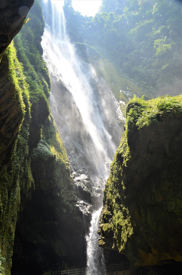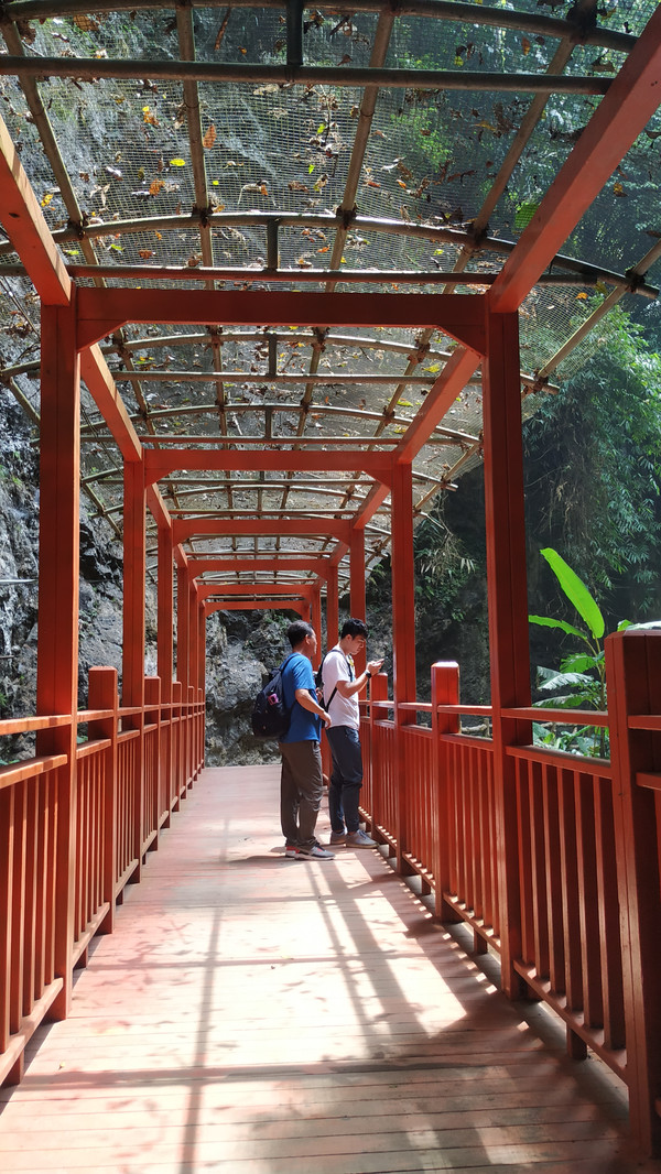 靖西县的旅游资源丰富,途径古龙山大峡谷、通灵大峡谷,由于时间关系,我们选择游玩通灵大峡谷为今天游玩的第二站(这个景点网上订票2小时后才生效)通灵大峡谷全长2.8公里,由通灵峡、念八峡及地下暗河、隧道贯通连接,通天彻地,灵气飘逸。高深的峡谷,清澈的溪流,苍翠的植被和188.6米的通灵大瀑布交相辉映,巨型钟乳石高崖倒悬,古树老藤遮天蔽日,水帘洞、地下河及气象万千的瀑布,河涧曲回,流水潺潺,满谷青翠欲滴,整个峡谷充满了活力和灵性。