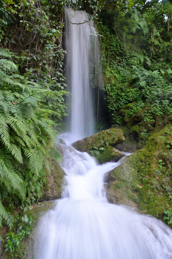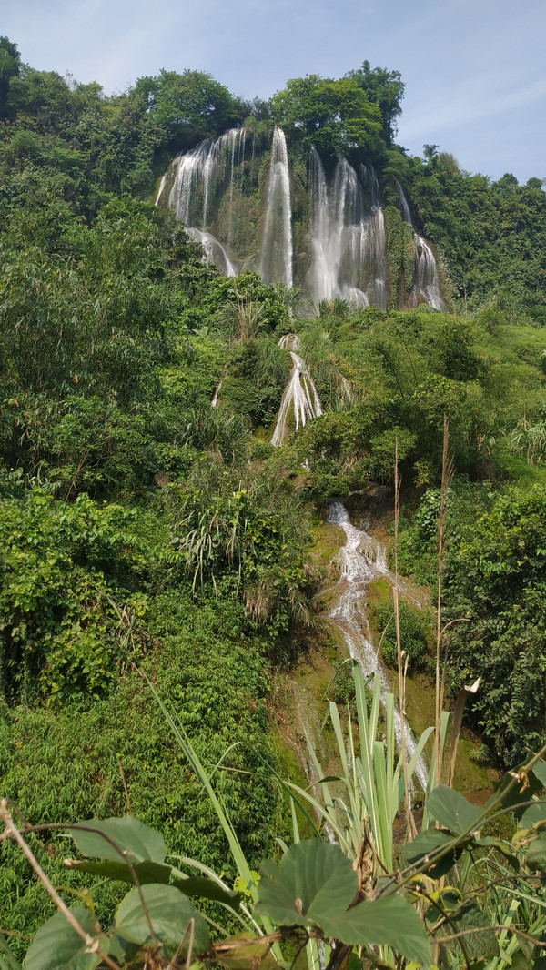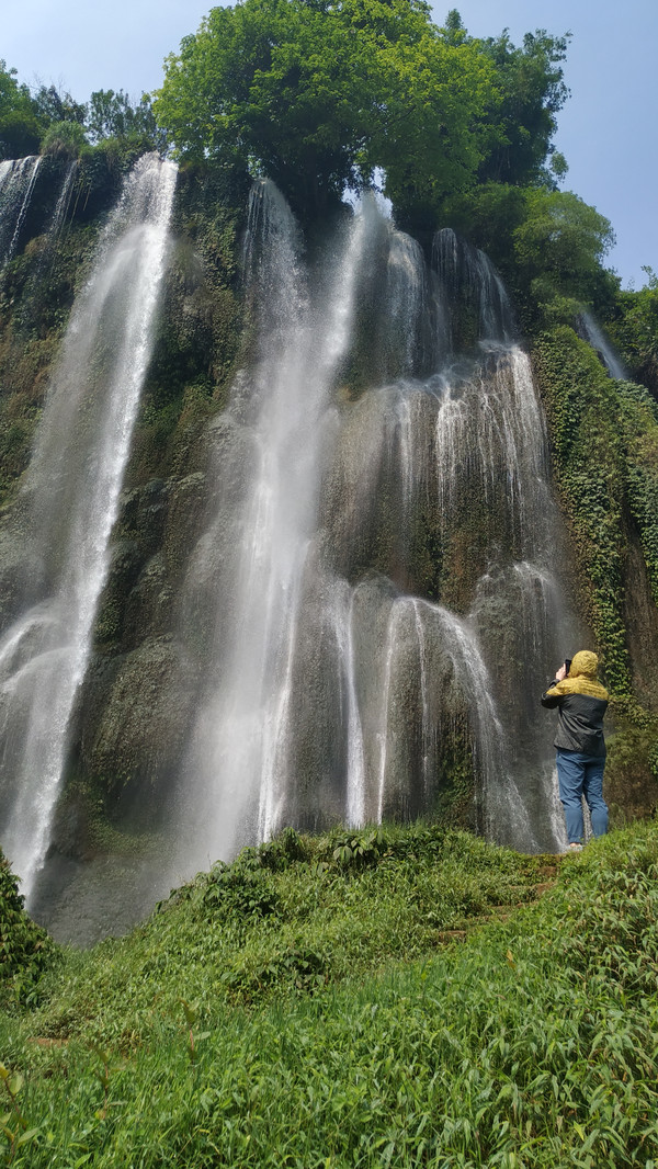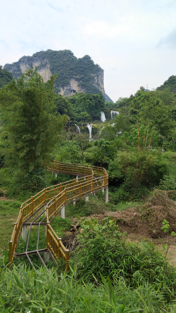 早晨告别德天瀑布向靖西方向进发。第一站来到位于高速公路旁、省道经其下的三叠岭瀑布,三叠岭瀑布为靖西八景之一,上望瀑布似银河泻落,状如悬练,雄伟壮观,故有“星汉流珠落九天”之佳句。(此景点免门票)