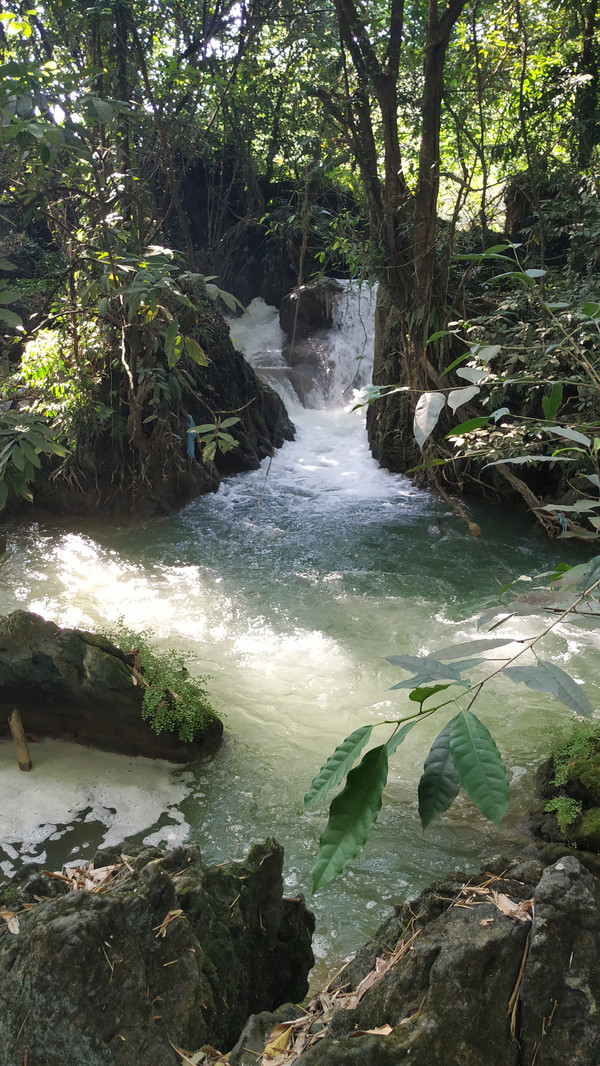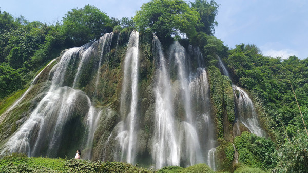 继续前行,来到了行程中的第三站——爱布瀑布,爱布瀑布群风景区位于靖西市东南部16公里,交通便利,离国道仅有500米,因地处爱布村而得名,由于地势多变、地形落差大,滩多水急,在爱布一带沿河形成了许多大大小小的瀑布群,相距仅在600米,瀑布最高为42米,最宽为50米。瀑布犹如巨大玉帘循崖而下,浪花飞溅,烟云满天,声需数里,气势极为壮观。(此景点免门票)