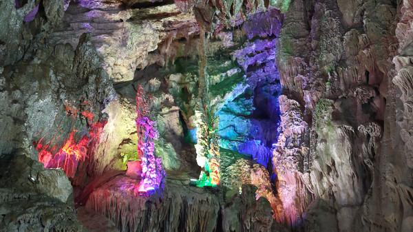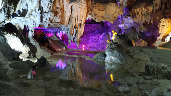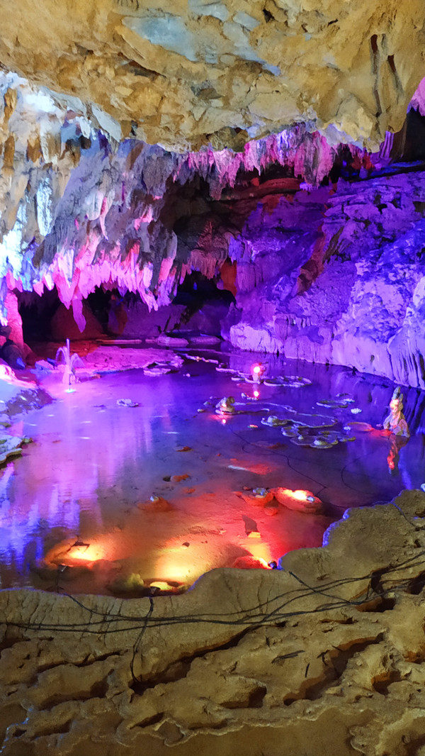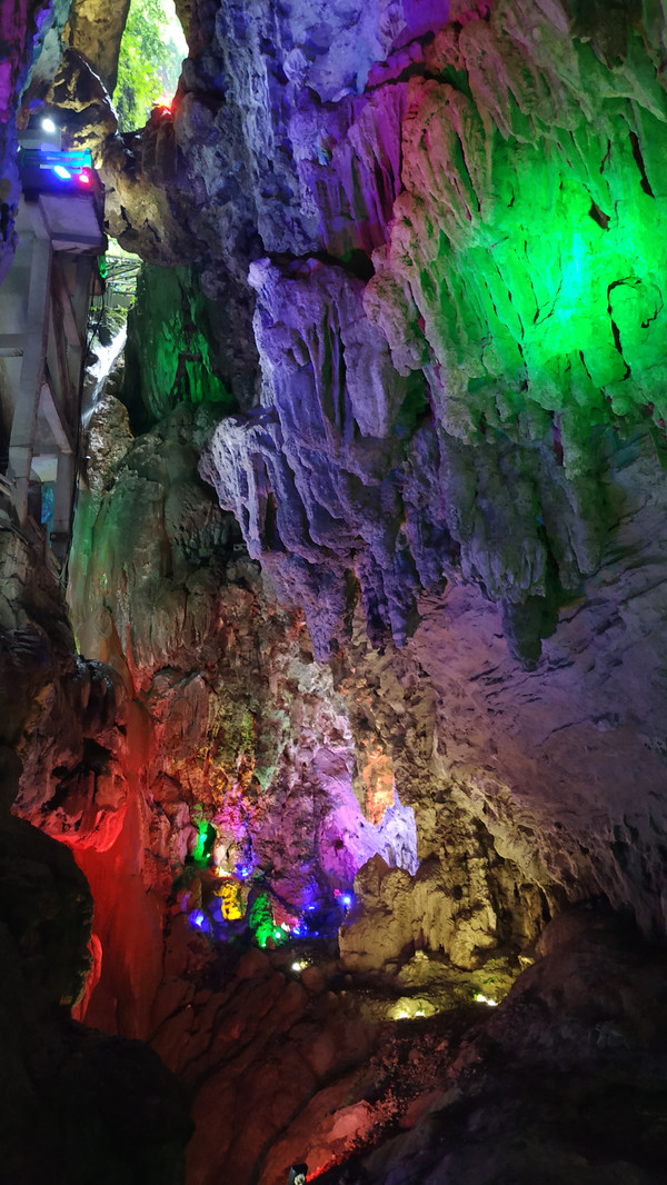 纳灵洞旅游景区位于凌云县城郊,距凌云县城约1公里,属典型的喀斯特岩溶地质地貌景观。景区洞体全长1500米,呈东西走向,“9”字型,双层结构,其中下层地下河长880米,上层旱洞长620米,两层之间高差28米。经过上亿年冲刷沉积而成的溶洞内深邃宽阔、溪流清澈见底,溪声潺潺如细曲。钟乳石千姿百态,奇光异彩:或游廊曲折,傍崖而过;或银河横飞,繁星闪烁;或岩花层叠,石柱高耸,惟妙惟肖。共分为5大景区32个景点。跟着工作人员游览需要70多分钟,洞内很多地方没有安置灯光,饱饱眼福可以,拍照就很难了。纳灵洞千奇百怪的钟乳石,在国内外洞穴中十分罕见,有“亚洲神奇第一洞”之美称。