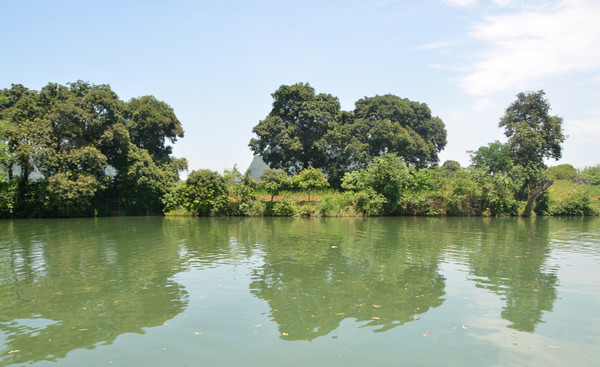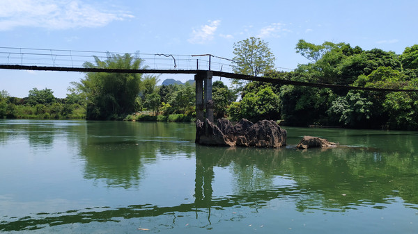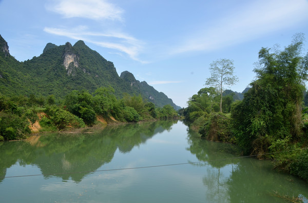我们首先来到位于崇左市大新县雷平镇的安平仙河景区,因地处安平村而得名。游船码头在骆越自驾游营地的后面,码头停着不少游船,只有我们三位游客,游船因疫情而停运了,只有一位船夫在码头喝茶,经过询价,我们以300元的价格包船游安平仙河70分钟,没有其它游船的干扰,我们玩得很尽兴,安平仙河岸两旁的植被覆盖率很高,是当年土司州衙的后花园。船老大尽心尽责地同我们讲解,我们来到了电视剧《花仙骨》的一个个拍摄点,荡舟黑水河上,景随舟移,人在景中,沿途奇峰夹峙,碧波清幽,古树成荫,两岸绿树倒影在清澈的河水中,清风拂面,令人神清气爽。清澈的河水平缓地在船下流动,坐在游船上不仅可以看到翠绿色的竹子,还可以看到绿色深处的村落、远处的青山、蓝天白云,这里的水照映着山,山又衬着河水,青山与流水在这里就是一条蜿蜒的画廊,真是不虚此行。