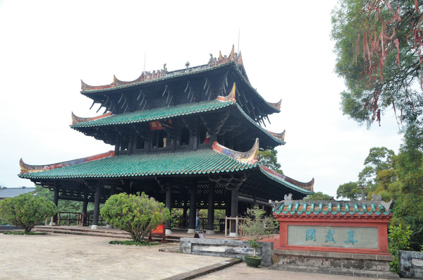 在容县我们主要游玩了全国重点文物保护单位——古经略台真武阁,真武阁被誉为“天南杰构”,与岳阳楼、黄鹤楼、滕王阁合称江南四大名楼,是唯一一座没有进行重建而完整保留至今的四大名楼。真武阁建于明万历元年(1573年)它的地下的经略台则建于唐乾元年(759年),均历史悠久。令人惊叹的卯榫结构斗拱、古朴素雅的装饰、历经多次地震与狂风依旧安然无恙的楼体,使得它浑身都散发着我国古代建筑的智慧与辉煌。真武阁最令人惊叹的地方便是阁楼二层悬空的四根柱子,它和屋檐就像天平的两端,通过檐柱衔接,达到平衡,从而使阁楼屹立不倒。这可以看出古人把“杠杆原理”的应用发挥到淋漓尽致了。
