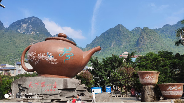 从浩坤湖景区出来到凌云县城,一路上见到当地政府沿着澄碧河边修了一条非常漂亮的绿道,大大方便了绿色出行的人们。下午五点顺利入住凌云时代凤凰时尚便捷酒店。凌云县,古称泗城,隶属广西壮族自治区百色市,有四条河流纵横交错会聚于城中,是一个近千年州、府、县治之地历史的文化古城。享有“山上水乡、古府凌云、宜居天堂”的美誉。城中巨大的茶壶雕塑告诉我,这里是中国茶叶之乡。