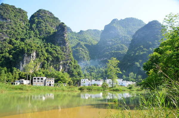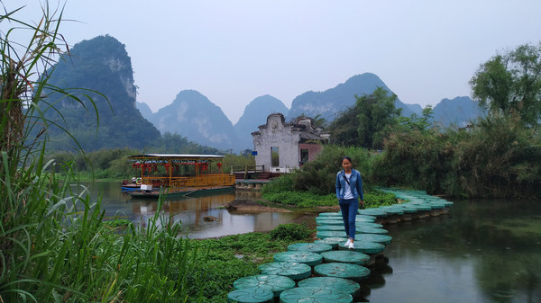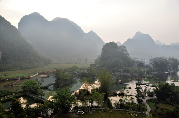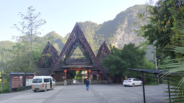 明仕田园属于大新县堪圩乡明仕村,距大新县县城53公里,为国家AAAA级景点。方圆20公里的景区山清水秀,山环水绕,素有小桂林之称。这里因是电视剧《花千骨》的外景拍摄地而受到游客的追捧,这里翠竹绕岸、农舍点缀、农夫荷锄、禾苗茁壮、牧童戏水,风光俊朗清逸,极富南国田园气息。距离晚饭还有一段时间,我们放下行李便立马融入这美丽的山水田园中了。。。