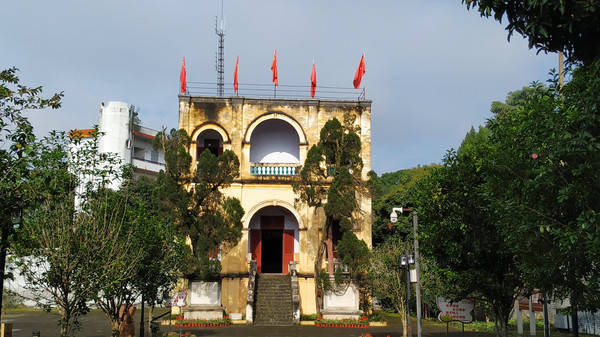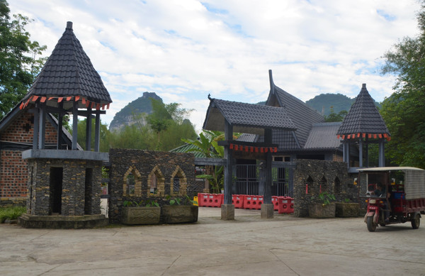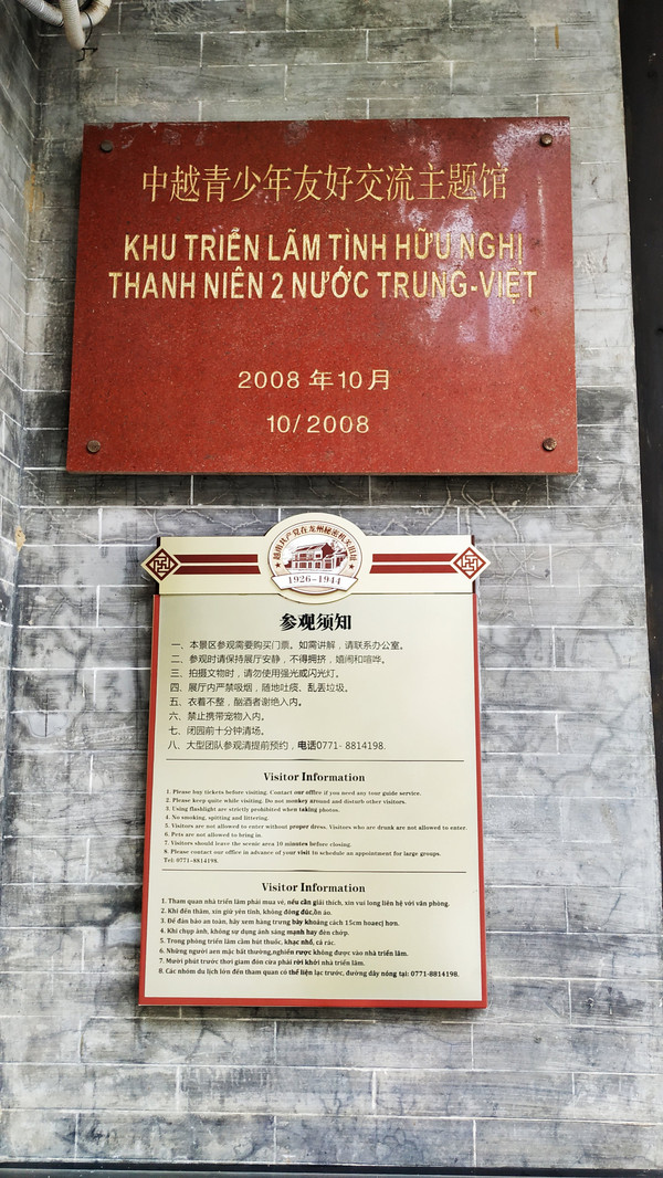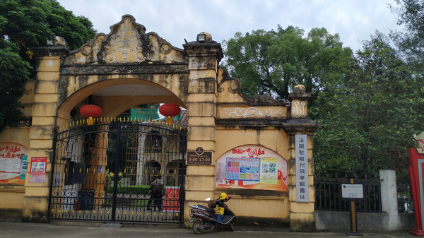 继续前行,到达龙州县城了,首先来到法国驻龙州领事馆,这是两幢结构相同的法式二层楼房,自1889年法国外交官安迪来龙州开设领事馆到1949年法国领事华义乐撤离,龙州与法国交往长达60年,法国领事馆期间,先后派出28位领事、副领事到龙州任职。可是我们来的不巧,龙州领事馆正在修缮,五一才开馆。有点小遗憾。