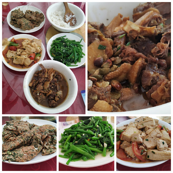 我们在明仕香米农家乐餐馆吃了两个正餐一个早餐,他家的饭香味每每想起还是回味无穷,在这里我们都是第一次品尝到鸡皮果焖鸭,其实鸡皮果就是小黄皮果,两种食材碰撞出了美味的菜肴。同时,这里的罗非鱼也非常清甜好吃,青菜更是绿色新鲜。