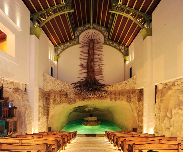 这是墨西哥最美丽的教堂之一。12米高的瓜达卢佩圣母木雕很是壮观。木雕下方有个非常特别的石制祭坛,看似漂浮在天然井水面上。