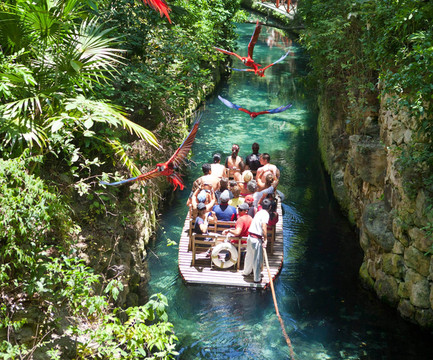 超想探索地下河,却又不想湿身的盆友,可以乘坐舒适的木筏顺着热带丛林河道在天堂般的风景中航行,一路上可以观赏到玛雅海岸特有的动植物,如蓝蟹、鬣蜥、野猪等。