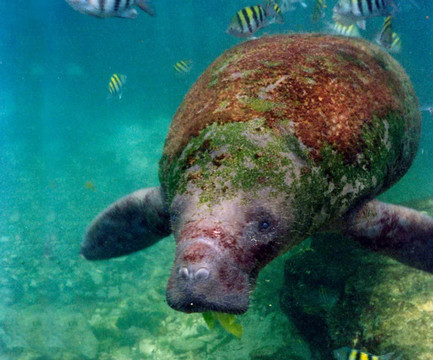 海牛是个非常奇异的物种,它们的身体类似鲸鱼,鳍片像海豹一样,还长着海狮的脸,尽管身体非常庞大(最重的有500公斤),但却非常温顺可亲。