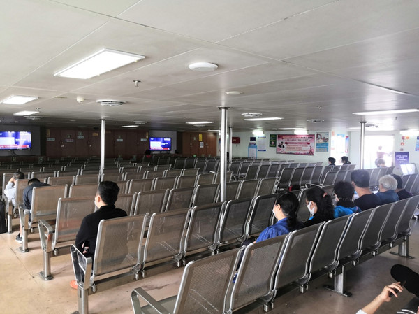 渡轮11:00开船,船行约1.5小时,抵达海口新港。渡轮到港后,广播通知车辆驾驶员提前坐到车里,船停稳后,待过渡板放好后,即可驾车离船,不论是登船、航渡,还是驶离渡轮,整个轮渡过程很便利、快捷,服务很好。登岸后,办理检疫手续,通过手机扫码显示机主的行程记录,无高风险地区旅行记录即可驾车离开港口,全程很便捷。