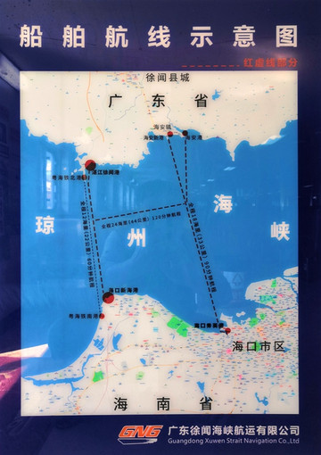 从徐闻乘轮渡过琼州海峡到海口有两条线路,一是从徐闻港到海口新海港,另一个是从徐闻海安新港到海口秀英港。海口新海港位置偏西,海口秀英港位置偏南,可以根据个人的旅行目的地选择。