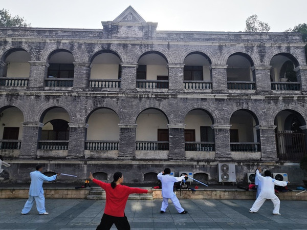 梧州市博物馆门前是建道圣经学院旧址,建道圣经学院是宣道会创建的第一所学校。1896年美国牧师从当地人手中购得此地,作为宣道会会所和牧师的居所。1938年改为“建道圣经学院”,1955年易名为“建道神学院”,目前处于不开放状态。博物馆门前的广场是百姓健身的场所。