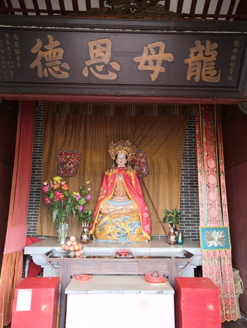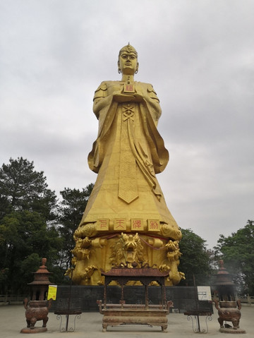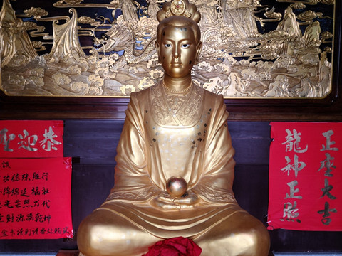 龙母塑像,龙母脸上和身上的小方块是信众贴的金箔。
