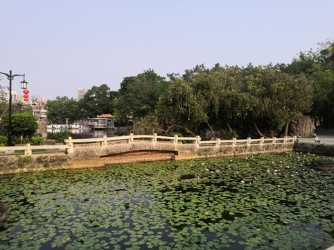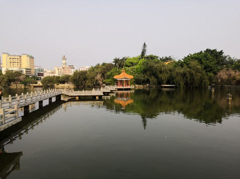 雷州西湖原名罗湖,因苏轼被贬海南时路过雷州,与被贬雷州的弟弟苏辙泛舟湖上,则后人将罗湖更名为西湖。雷州西湖不大,是一个开放式公园,使当地人休闲、散步、锻炼和跳广场舞的场所。园内有苏公亭、苏堤、十贤祠、龙宫等历史遗迹,目前苏公亭和十贤祠为危房,处于待修状态,不能参观。