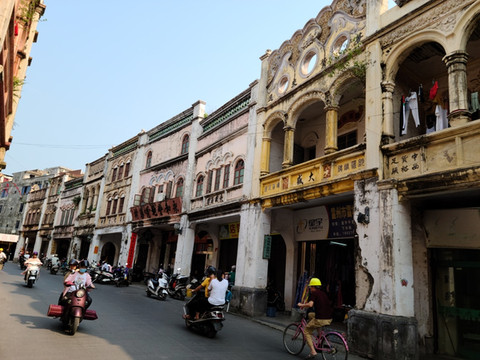 雷州的城市建设不是很现代,还保留了许多过去的老骑楼建筑,小城镇的味道很浓,街上电动车成群,飞驶而过。