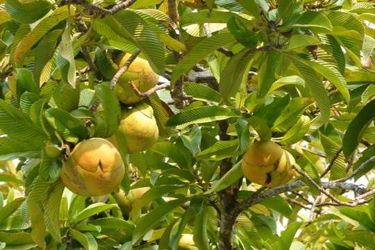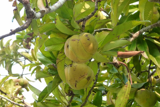 公园内有两株引自印度的树木,称大花第伦桃,树上结满了奇异的果实,不知此果有何用?