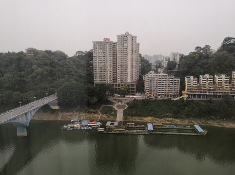 梧州的骑楼老街,西江中的游泳池,用船框起江水,即成为一个天然游泳池。