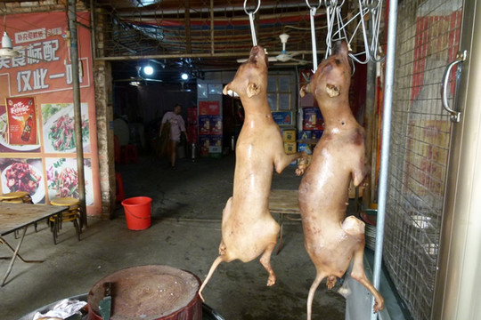 狗肉是雷州的特色,来到雷州应该品尝一下。在街上刚好有一家狗肉铺,18元买了一条狗腿品尝,味道不错。瘦娘狗煲档是当地有名的狗肉餐馆,供应狗肉或羊肉火锅。