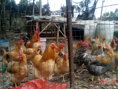 如今渔民搞起了餐馆,养的鸡多好。